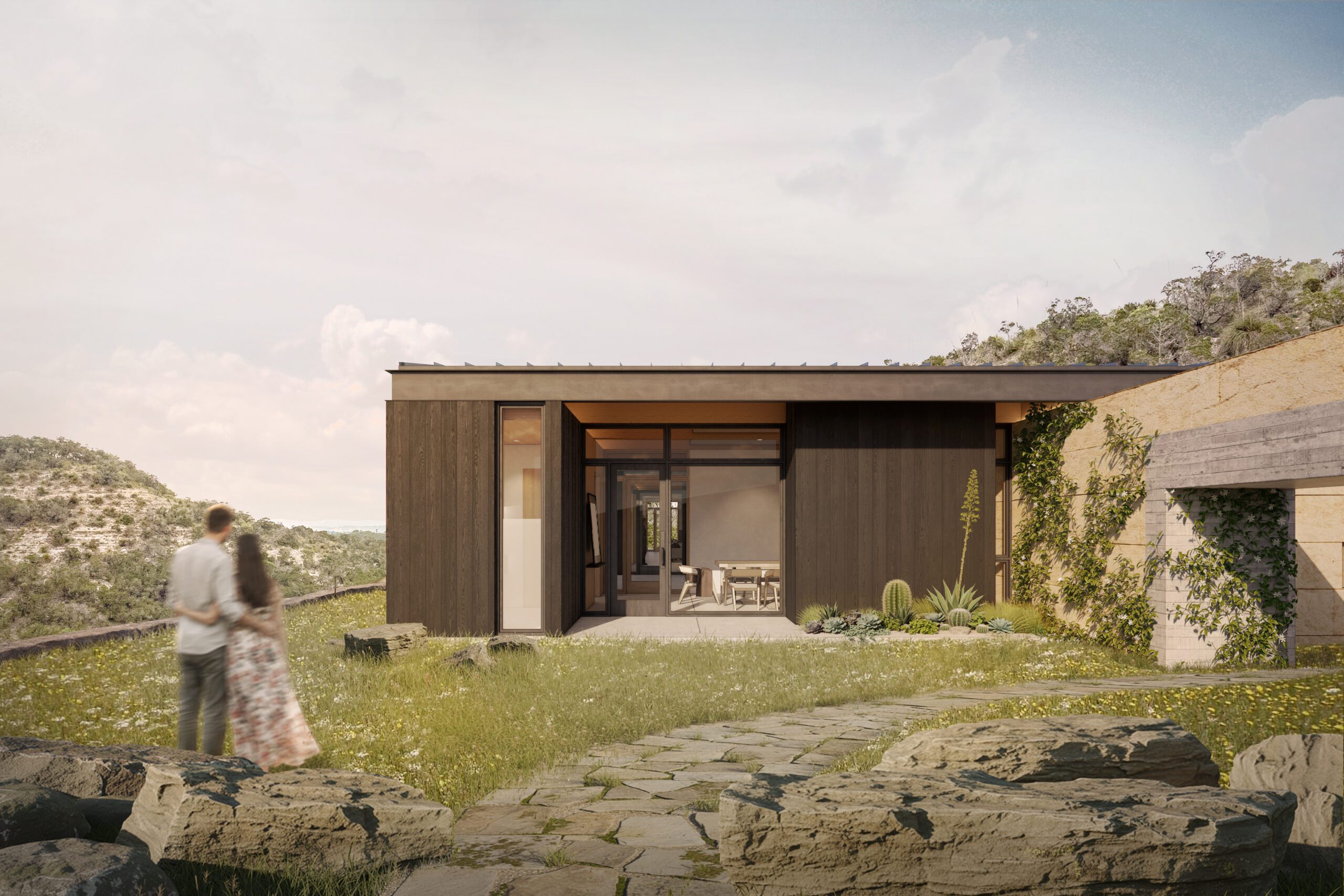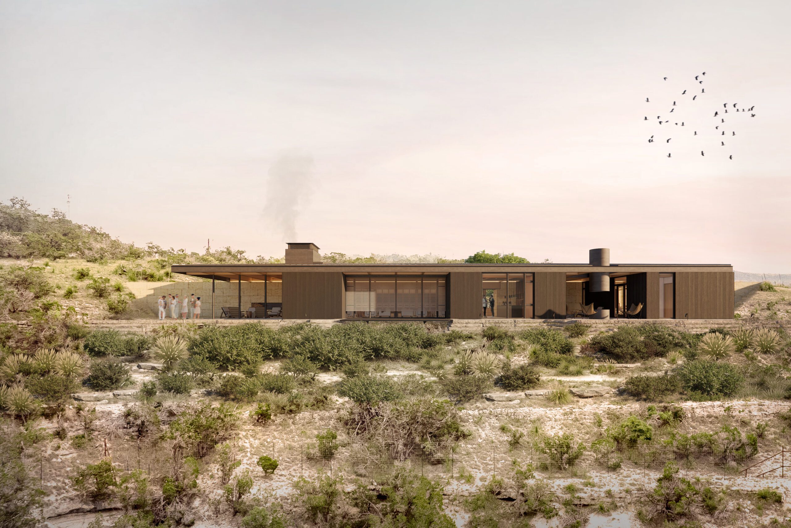 Rooted in its environment and responsive to its rhythms, the tasting room and retreat offer a refined yet grounded experience. It is a place where protection and exposure are balanced, where built form and landscape are deeply intertwined, and where guests are invited to slow down and savor the land’s quiet generosity. In the heart of the Hill Country, it stands not in opposition to nature, but as a testament to living in harmony with it.